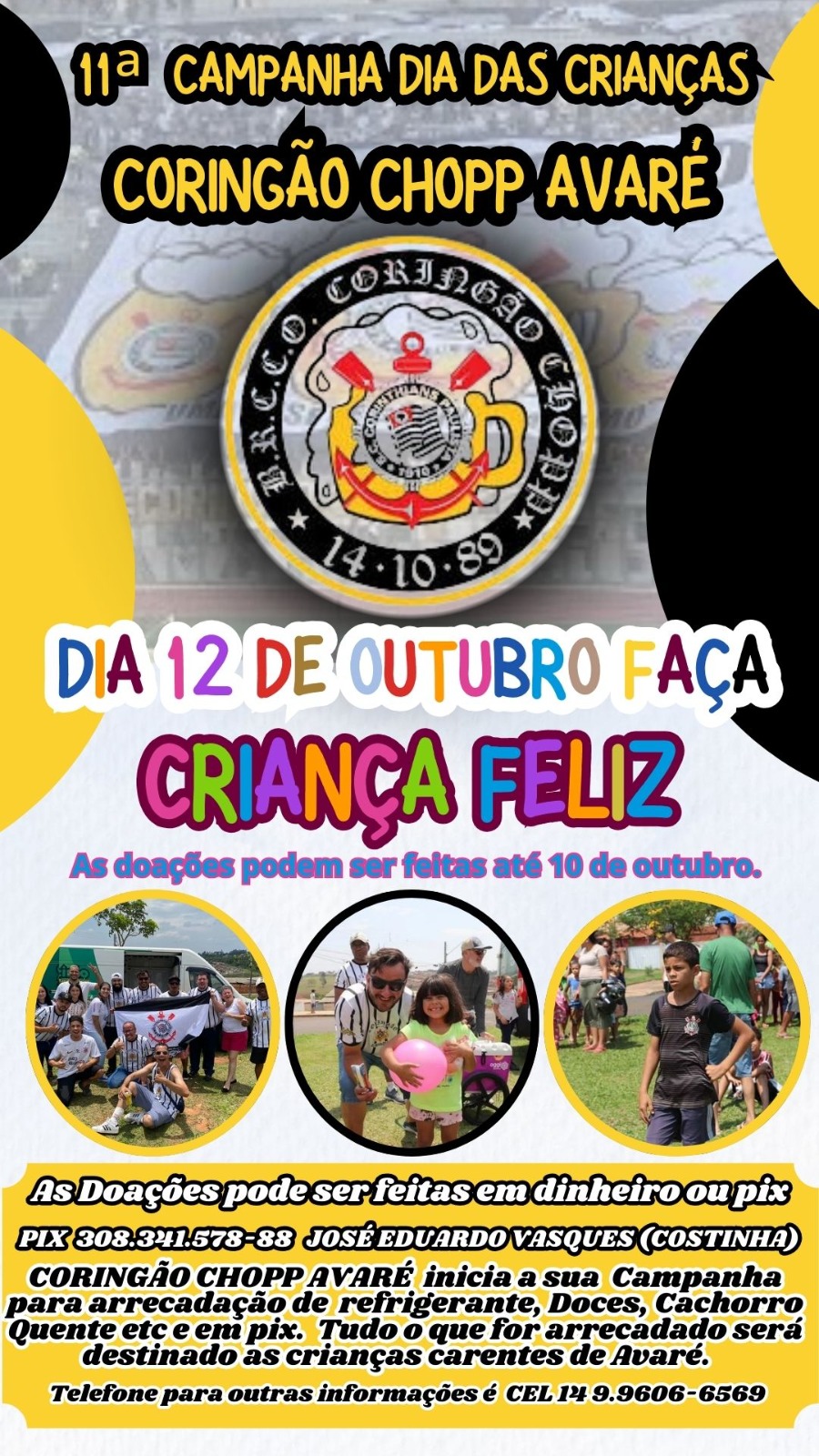 A *CORINGÃO CHOPP AVARE* inicia a sua Campanha para arrecadação de refrigerante, Doces, Cachorro Quente etc. e em pix.