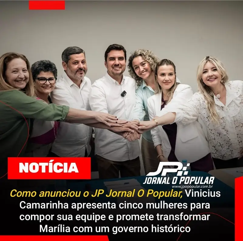 Na manhã desta quinta-feira (21), o prefeito eleito de Marília, Vinicius Camarinha (PSDB), confirmou o que já havia sido antecipado pelo JP Jornal O Popular: o anúncio de cinco mulheres para liderar as principais secretarias de sua gestão, que terá início no dia 1º de janeiro. Durante a coletiva de imprensa, ao lado do vice-prefeito eleito, Rogerinho, e com a presença de 14 dos 17 vereadores eleitos, Camarinha destacou a importância da representatividade feminina e reafirmou seu compromisso com um governo técnico e inovador.