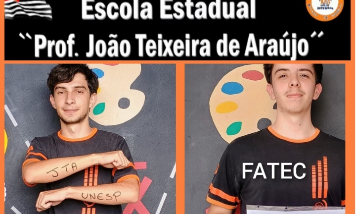 “Vocês são exemplos de dedicação, esforço e superação! Suas conquistas mostram que alunos da escola pública têm plena capacidade de alcançar seus sonhos e construir um futuro brilhante. Ter alunos que saem da João Teixeira e ingressam em instituições renomadas como a UNESP e a FATEC é um motivo de grande orgulho para toda a nossa equipe escolar e para a comunidade que acreditou em vocês. Continuem trilhando esse caminho de conquistas e inspiração. Que o sucesso de vocês sirva de motivação para todos os colegas que também sonham alto. Parabéns, João e Luiz Otávio! Que essa seja apenas a primeira de muitas vitórias”!