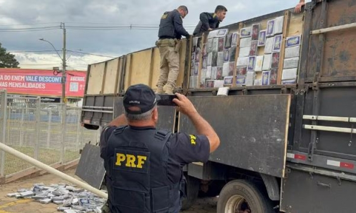 legenda: Apreensão foi realizada no início da tarde de terça-feira (11) pela Polícia Rodoviária Federal e a ocorrência foi apresentada no Plantão Policial. O motorista foi preso.