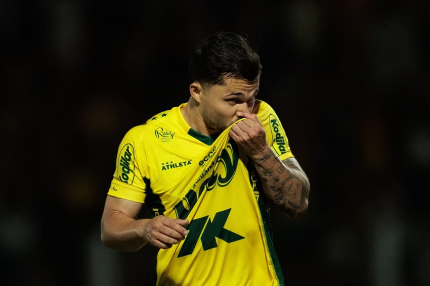 Alesson comemora um dos gols da goleada. Mirassol atropela o Bahia (Foto: Vinicius Silva/AGIF)