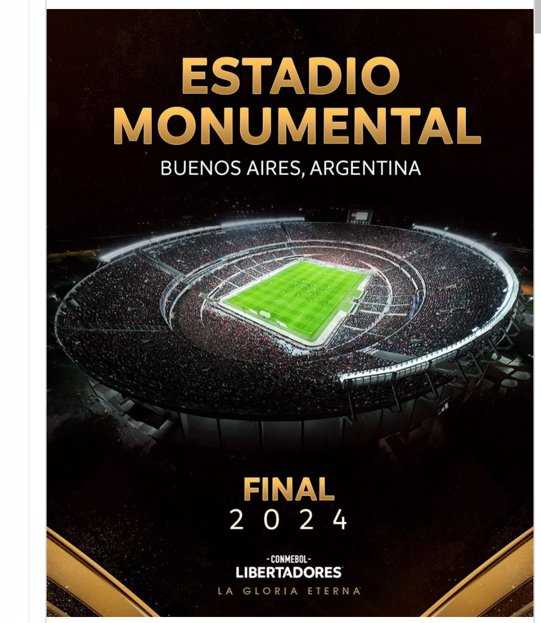 – O Estádio Monumental, com capacidade para mais de 84 mil espectadores, foi escolhido por sua moderna infraestrutura, sua vasta história esportiva e sua capacidade de receber o grande número de torcedores que acompanham os atuais clubes semifinalistas, garantindo assim um cenário com capacidade compatível com a magnitude do evento – escreveu a Conmebol.