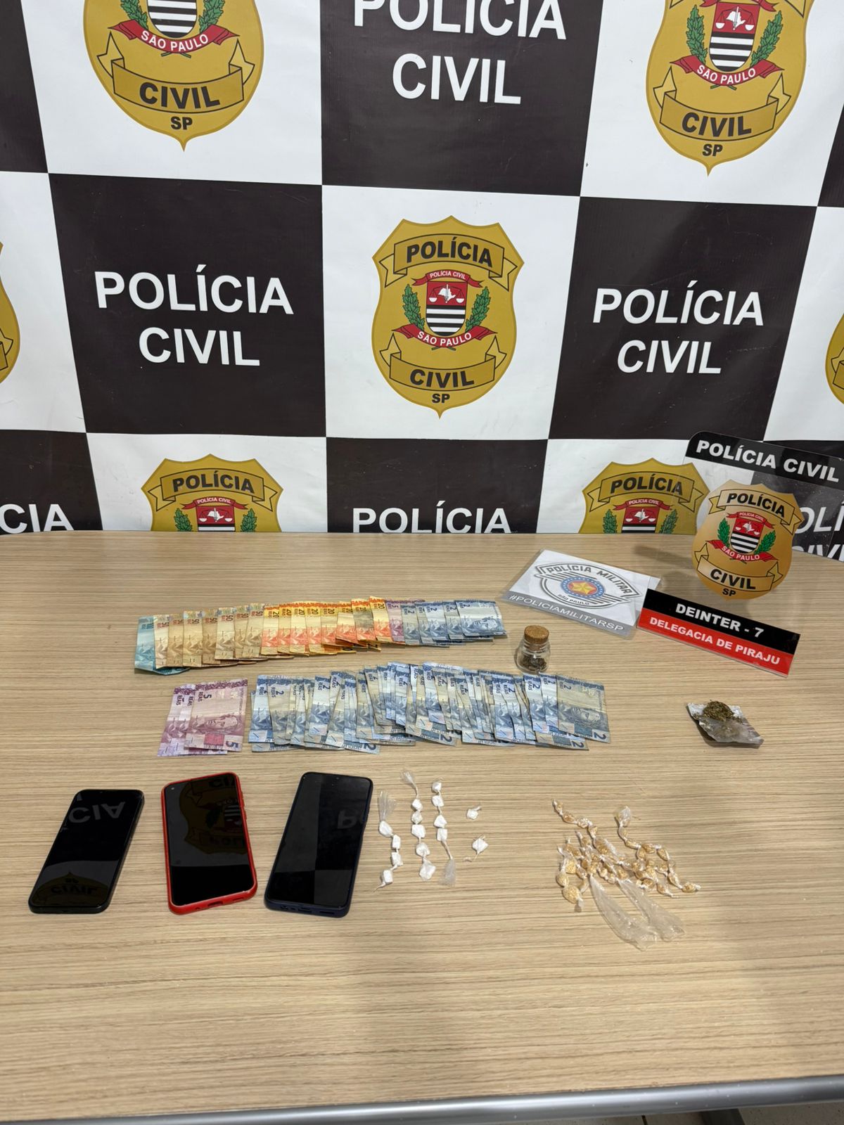 Durante a operação, os policiais apreenderam expressiva quantidade de drogas e diversos objetos relacionados à atividade criminosa. Foram recolhidas aproximadamente 10 gramas de cocaína, 17 gramas de crack, além de porções de maconha e uma unidade de ecstasy, parte delas já fracionadas e prontas para a comercialização. Também foram apreendidos R$ 814,30 em dinheiro, em notas e moedas de pequeno valor, bem como quatro aparelhos celulares, os quais serão submetidos à análise para auxiliar no aprofundamento das investigações.