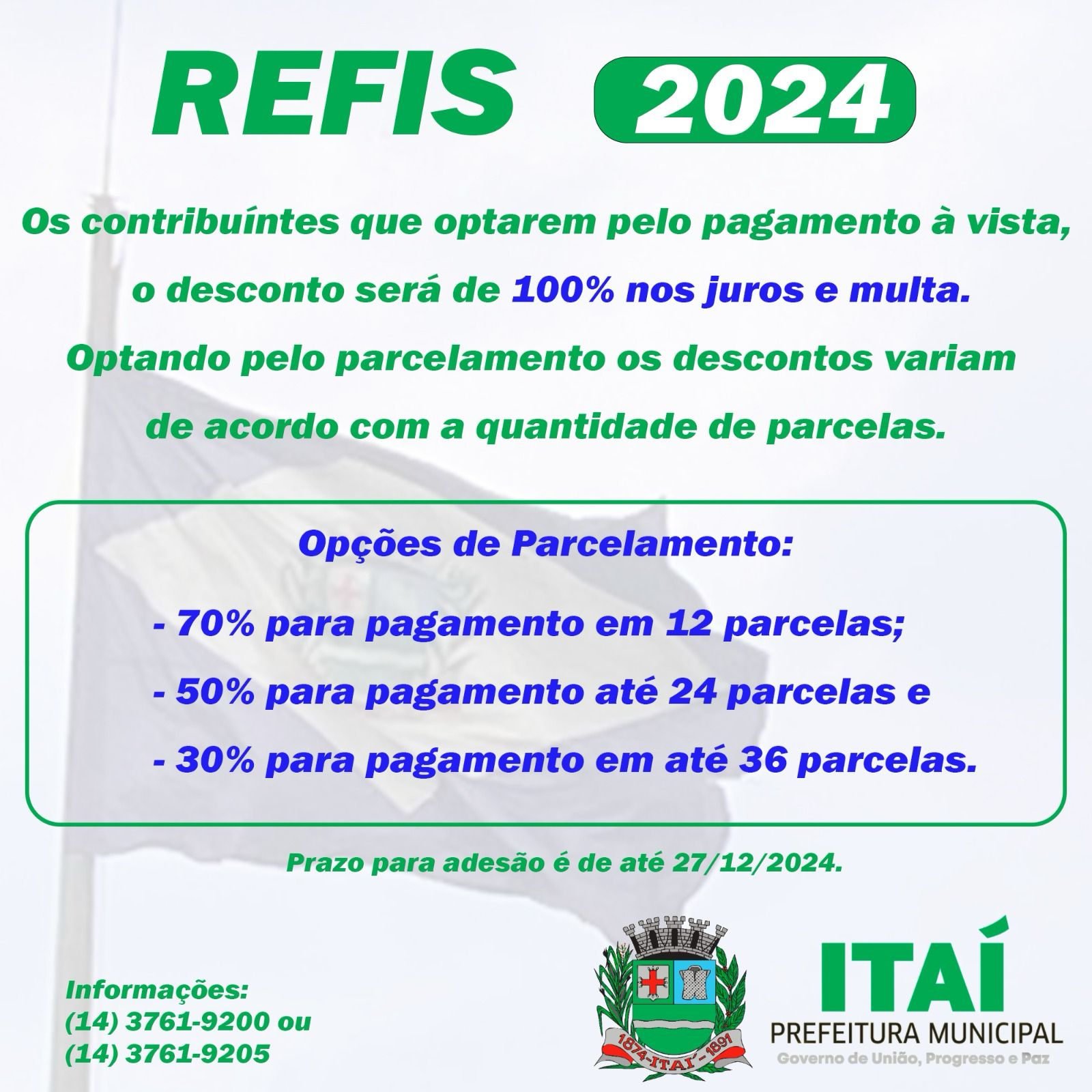 O REFIS vale para débitos gerados até 31 de dezembro de 2023, o prazo para a adesão vai até 27 de dezembro de 2024.