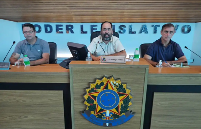 A Comissão Processante é formada por três vereadores: Hidalgo André de Freitas como presidente, Magno Greguer como relator e Moacir Lima como membro.