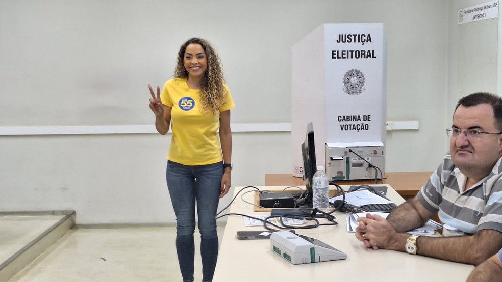 Suéllen Rosim vota em Bauru (SP) — Foto: Amanda Sanches/TV TEM